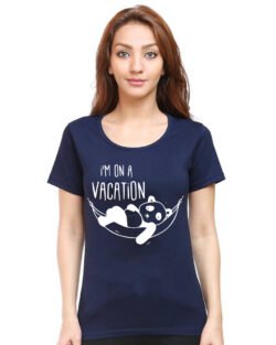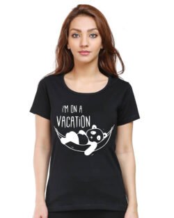 Caseria Women’s Cotton Biowash Graphic Printed Half Sleeve T-Shirt – I Am On Vacation