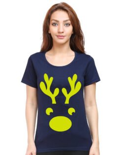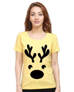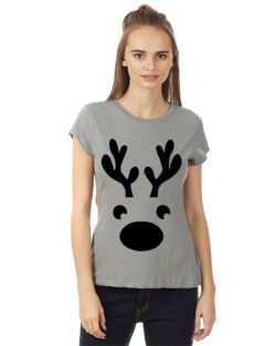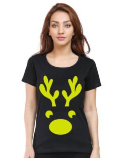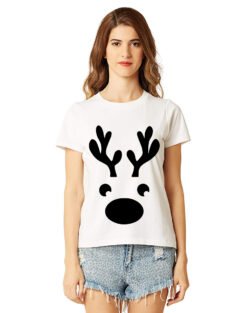 Caseria Women’s Cotton Biowash Graphic Printed Half Sleeve T-Shirt – Christmas Deer