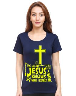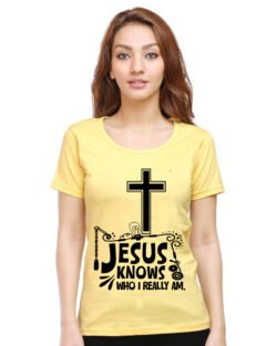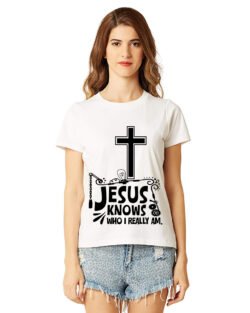 Caseria Women’s Cotton Biowash Graphic Printed Half Sleeve T-Shirt – Jesus Knows Who I Am