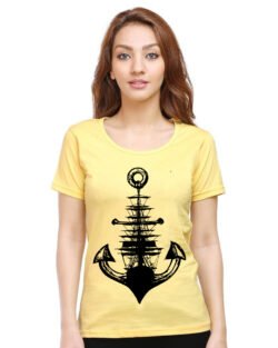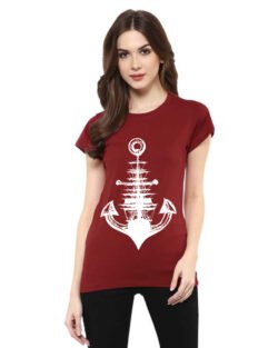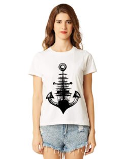 Caseria Women’s Cotton Biowash Graphic Printed Half Sleeve T-Shirt – Ship Anchor