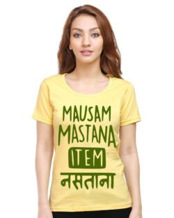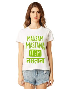 Caseria Women’s Cotton Biowash Graphic Printed Half Sleeve T-Shirt – Mausam Mastana Item Nastana