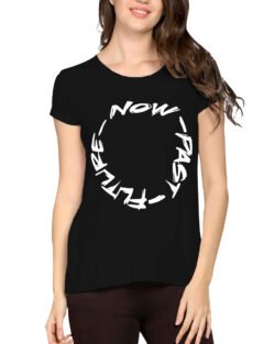 Caseria Women’s Cotton Biowash Graphic Printed Half Sleeve T-Shirt – Now Past Future