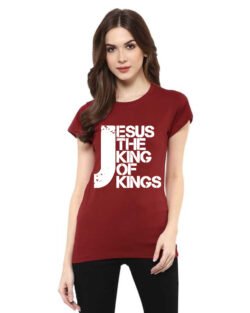 Caseria Women’s Cotton Biowash Graphic Printed Half Sleeve T-Shirt – Jesus The King Of Kings