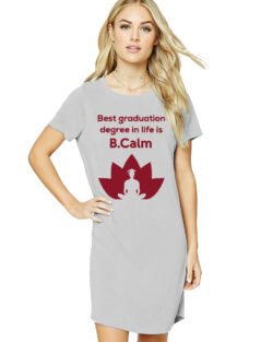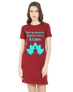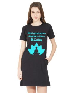 Caseria Women’s Cotton Biowash Graphic Printed T-Shirt Dress with side pockets – Be Calm Best Graduation