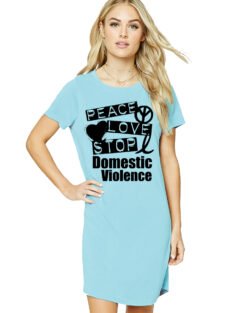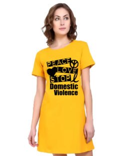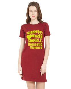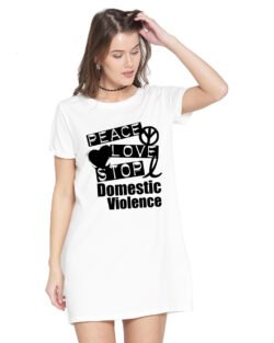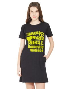 Caseria Women’s Cotton Biowash Graphic Printed T-Shirt Dress with side pockets – Domestic Violence