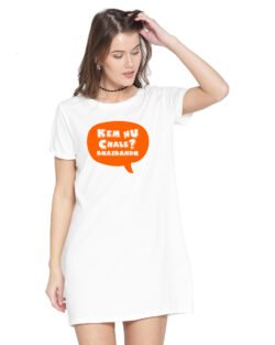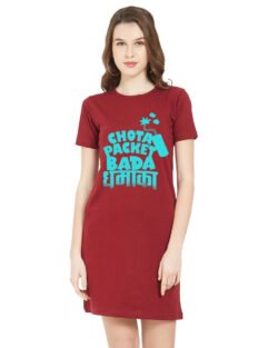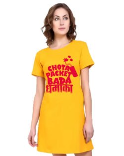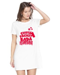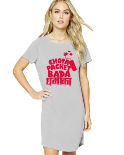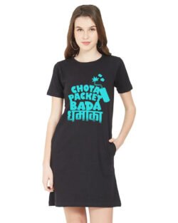 Caseria Women’s Cotton Biowash Graphic Printed T-Shirt Dress with side pockets – Chota Packet Bada Dhamaka
