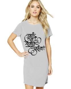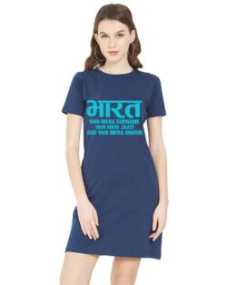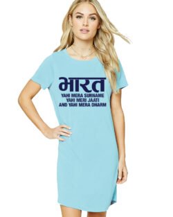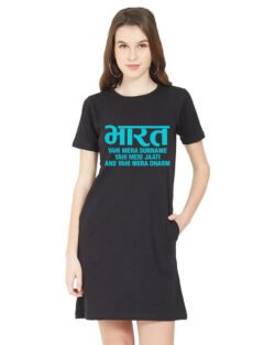 Caseria Women’s Cotton Biowash Graphic Printed T-Shirt Dress with side pockets – Bharat Surname