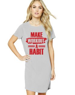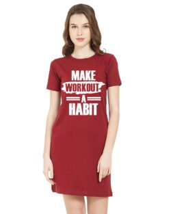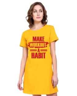 Caseria Women’s Cotton Biowash Graphic Printed T-Shirt Dress with side pockets – Make Workout Habit