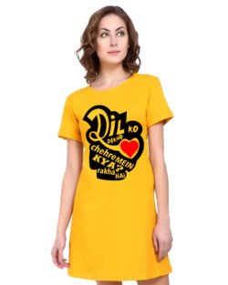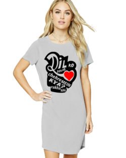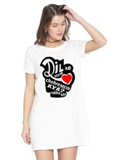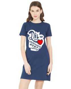 Caseria Women’s Cotton Biowash Graphic Printed T-Shirt Dress with side pockets – Dil Ko Dekho