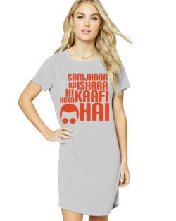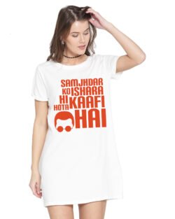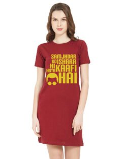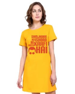 Caseria Women’s Cotton Biowash Graphic Printed T-Shirt Dress with side pockets – Ishara Kaafi Hai