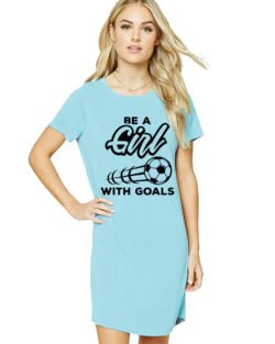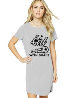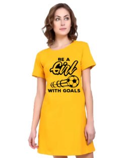 Caseria Women’s Cotton Biowash Graphic Printed T-Shirt Dress with side pockets – Girl With Goal