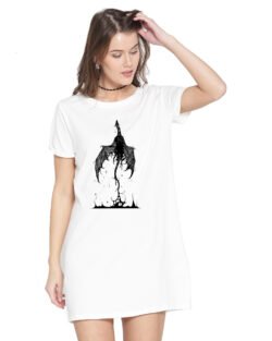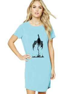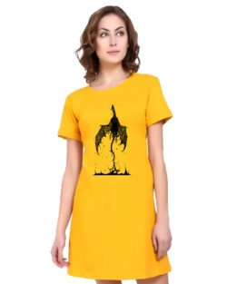 Caseria Women’s Cotton Biowash Graphic Printed T-Shirt Dress with side pockets – Fly Magic