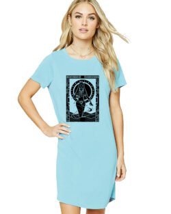 Caseria Women’s Cotton Biowash Graphic Printed T-Shirt Dress with side pockets – Card Ganga