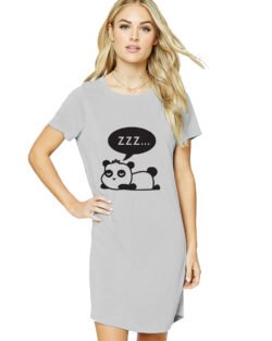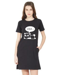 Caseria Women’s Cotton Biowash Graphic Printed T-Shirt Dress with side pockets – Sleeping Teddy