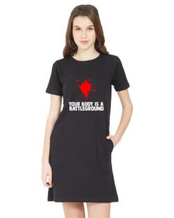Caseria Women’s Cotton Biowash Graphic Printed T-Shirt Dress with side pockets – Body Battleground