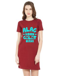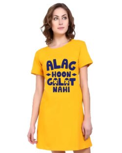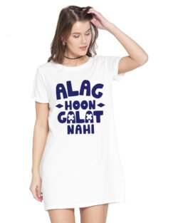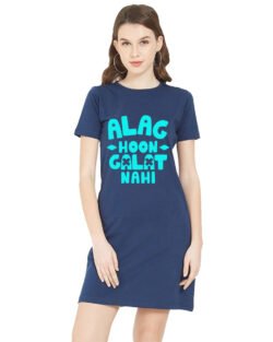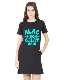 Caseria Women’s Cotton Biowash Graphic Printed T-Shirt Dress with side pockets – Alag Hoon Galat Nahi