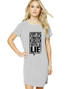 Caseria Women’s Cotton Biowash Graphic Printed T-Shirt Dress with side pockets – Never A Lie