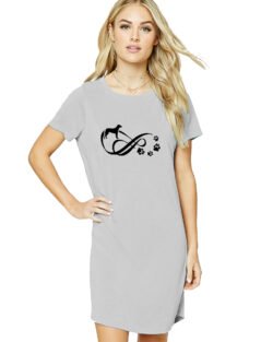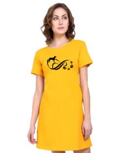 Caseria Women’s Cotton Biowash Graphic Printed T-Shirt Dress with side pockets – Pet Life Love