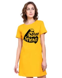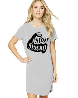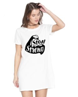 Caseria Women’s Cotton Biowash Graphic Printed T-Shirt Dress with side pockets – Stay Strong