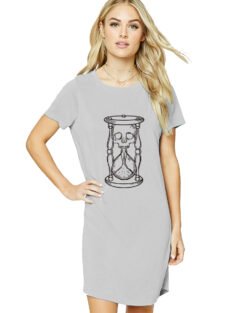 Caseria Women’s Cotton Biowash Graphic Printed T-Shirt Dress with side pockets – Time Sand Skull