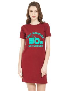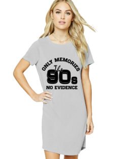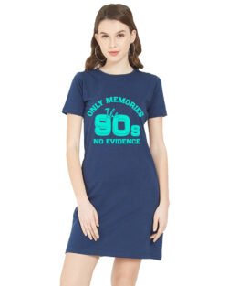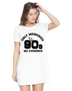 Caseria Women’s Cotton Biowash Graphic Printed T-Shirt Dress with side pockets – 90s No Evidence