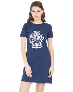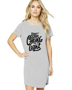 Caseria Women’s Cotton Biowash Graphic Printed T-Shirt Dress with side pockets – Chasing The Light