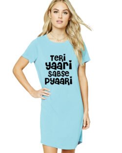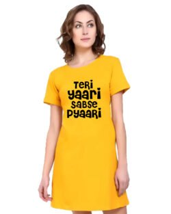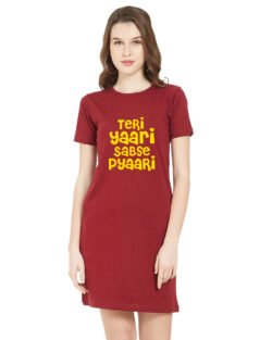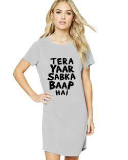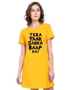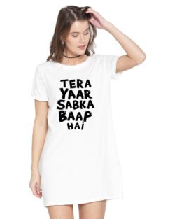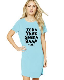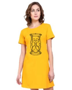 Caseria Women’s Cotton Biowash Graphic Printed T-Shirt Dress with side pockets – Tera Yaar Sabka