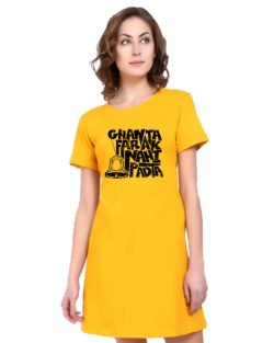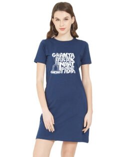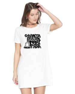 Caseria Women’s Cotton Biowash Graphic Printed T-Shirt Dress with side pockets – Ghanta Padta
