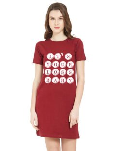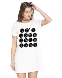 Caseria Women’s Cotton Biowash Graphic Printed T-Shirt Dress with side pockets – Your Loss Baby