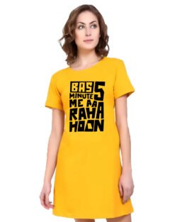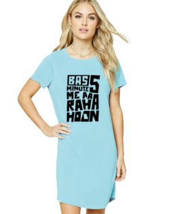 Caseria Women’s Cotton Biowash Graphic Printed T-Shirt Dress with side pockets – Bas Five Mins