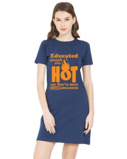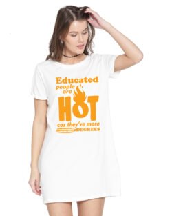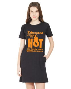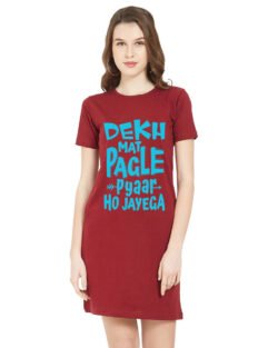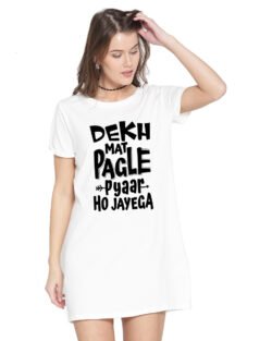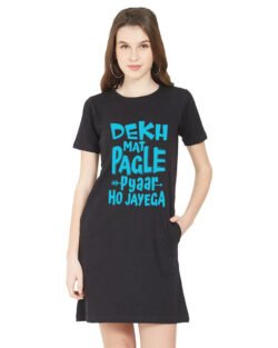 Caseria Women’s Cotton Biowash Graphic Printed T-Shirt Dress with side pockets – Dekh Mat Pagale