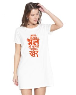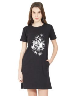 Caseria Women’s Cotton Biowash Graphic Printed T-Shirt Dress with side pockets – Sakht Launda Sakhti
