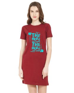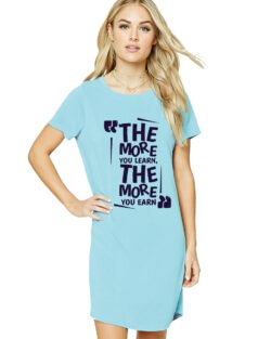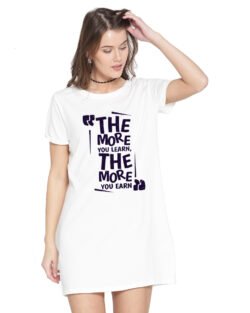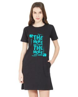 Caseria Women’s Cotton Biowash Graphic Printed T-Shirt Dress with side pockets – Learn More Earn More