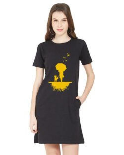 Caseria Women’s Cotton Biowash Graphic Printed T-Shirt Dress with side pockets – Girl Separate Fanbase