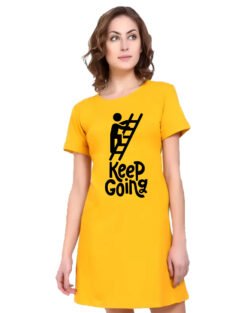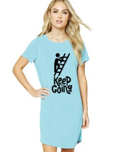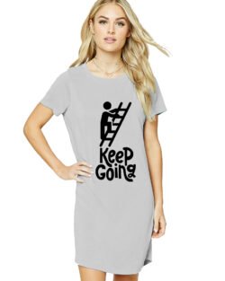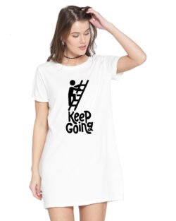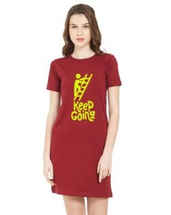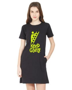 Caseria Women’s Cotton Biowash Graphic Printed T-Shirt Dress with side pockets – Keep Going