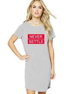 Caseria Women’s Cotton Biowash Graphic Printed T-Shirt Dress with side pockets – Never Settle