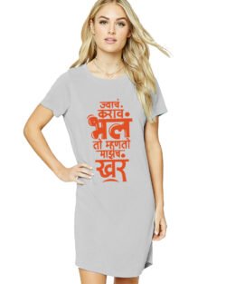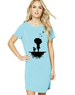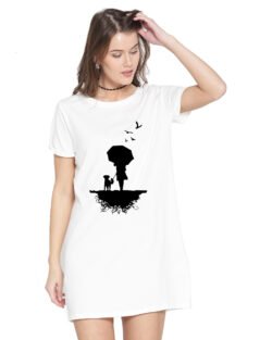 Caseria Women’s Cotton Biowash Graphic Printed T-Shirt Dress with side pockets – Bhala Khara