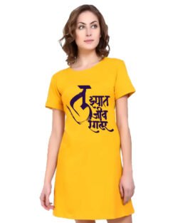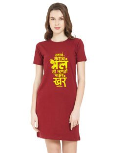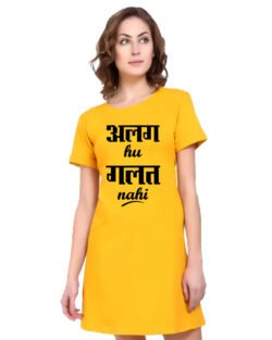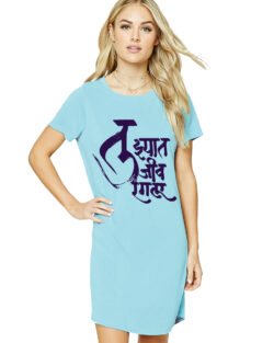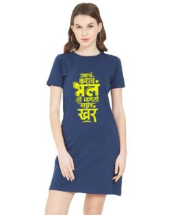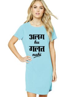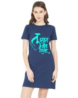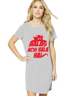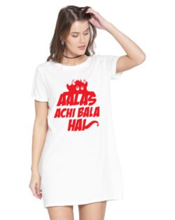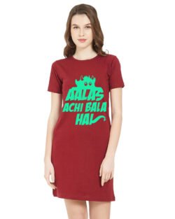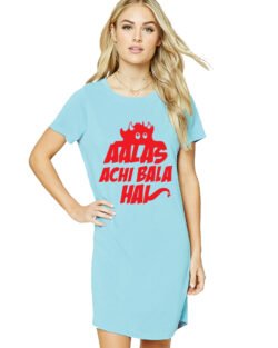 Caseria Women’s Cotton Biowash Graphic Printed T-Shirt Dress with side pockets – Aalas Achi Bala Hai