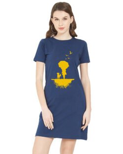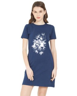 Caseria Women’s Cotton Biowash Graphic Printed T-Shirt Dress with side pockets – Tujhat Jeev Rangala