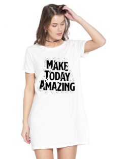 Caseria Women’s Cotton Biowash Graphic Printed T-Shirt Dress with side pockets – Make Today Amazing