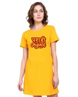 Caseria Women’s Cotton Biowash Graphic Printed T-Shirt Dress with side pockets – Pahaadee Original