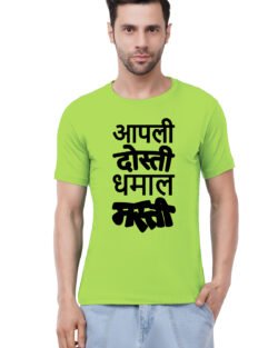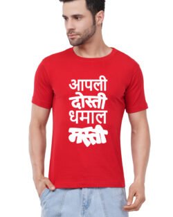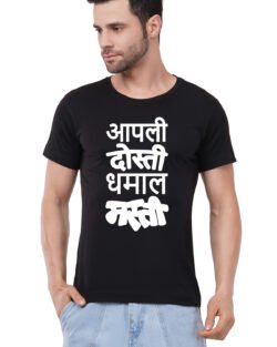 Caseria Men’s Cotton Graphic Printed Half Sleeve T-Shirt – Apali Dosti Dhamal Masti