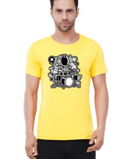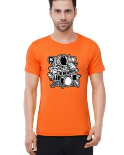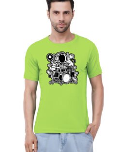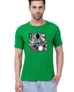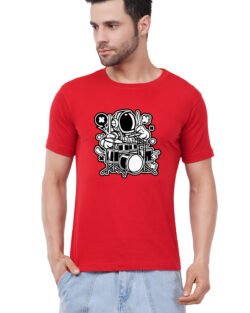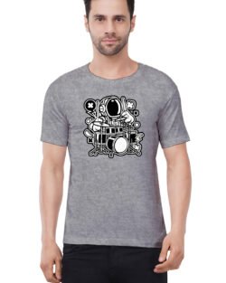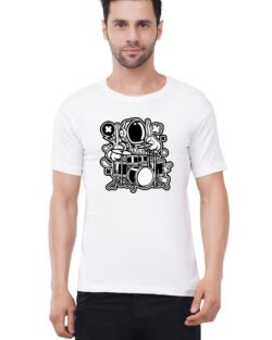 Caseria Men’s Cotton Graphic Printed Half Sleeve T-Shirt – Astronaut Drummer