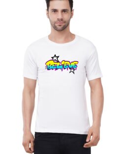 Caseria Men’s Cotton Graphic Printed Half Sleeve T-Shirt – Believe Star