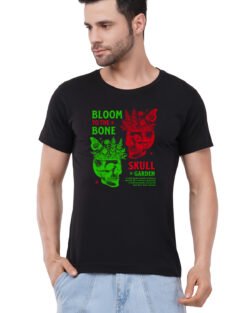 Caseria Men’s Cotton Graphic Printed Half Sleeve T-Shirt – Bloom Bone Skull
