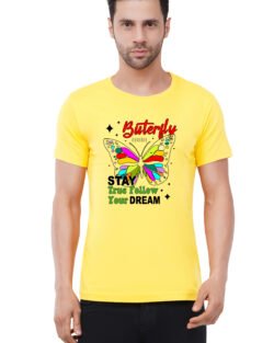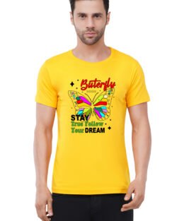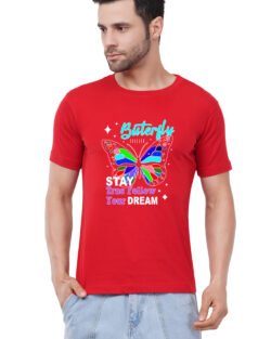 Caseria Men’s Cotton Graphic Printed Half Sleeve T-Shirt – Buterfly Stay Dream