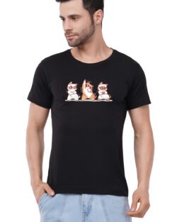 Caseria Men’s Cotton Graphic Printed Half Sleeve T-Shirt – Cute Cat Dance