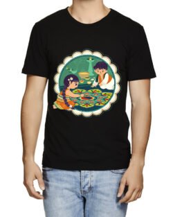 Caseria Kid’s Cotton Graphic Printed Half Sleeve T-Shirt – Cute Diwali