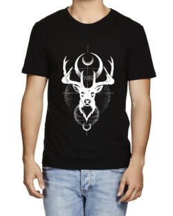 Caseria Men’s Cotton Graphic Printed Half Sleeve T-Shirt – Deer Moon