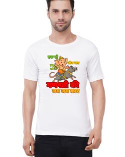Caseria Men’s Cotton Graphic Printed Half Sleeve T-Shirt – Ek Do Teen Ganpati Marathi